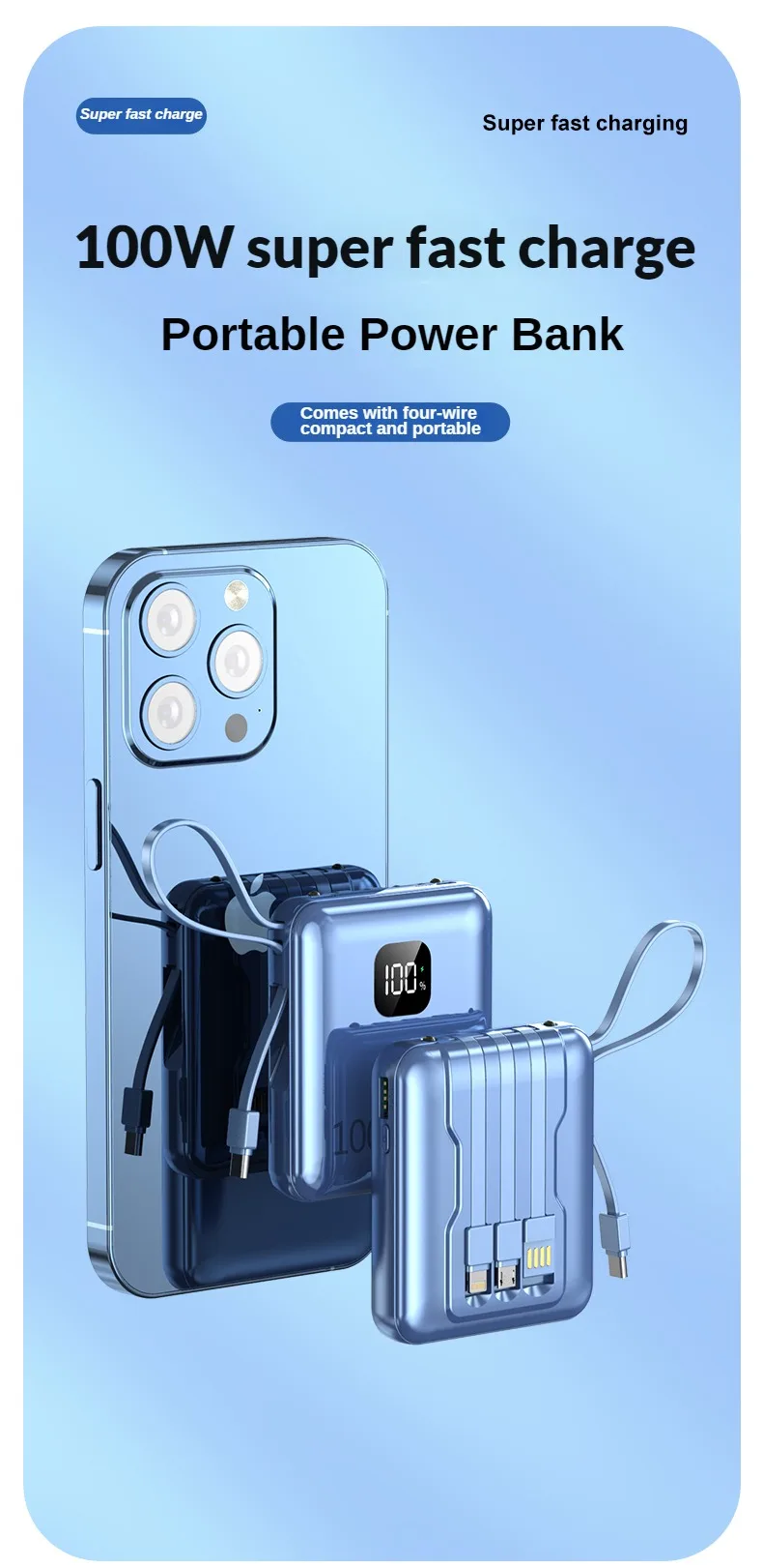 66W Super Fast Charge 20000mAh Mini Power Pack Built in Cable Power Pack For iPhone 16 13 Pro Xiaomi External Battery Charger