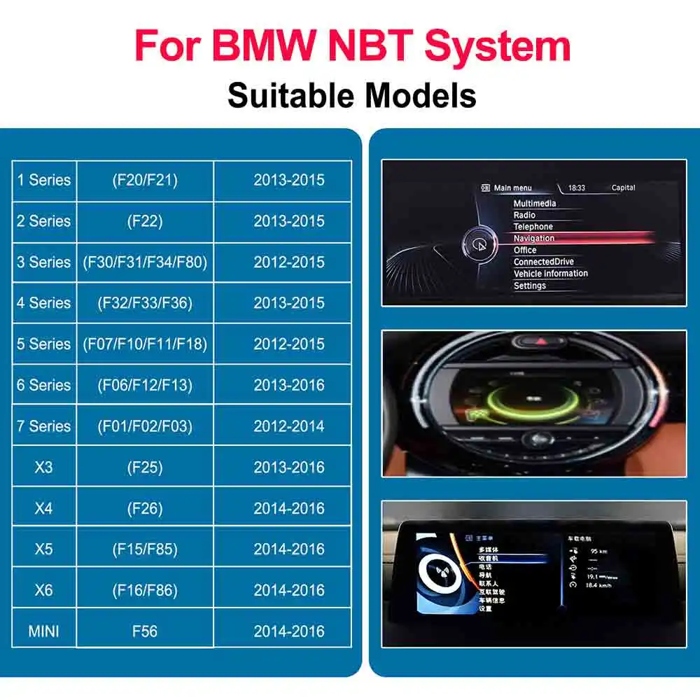 Wireless CarPlay Android For BMW NBT CIC System BMW NBT CIC System 1 2 3 4 5 6 7 Series X1 X3 X4 X5 X6 MINI E60 E84 E70 F26 F25